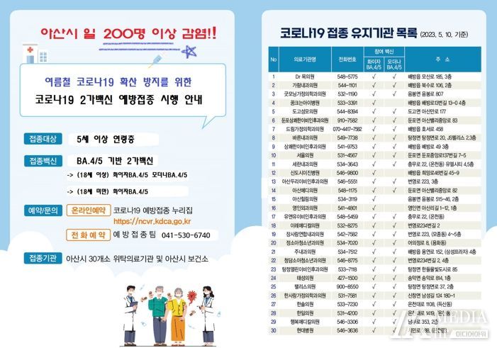 미디어아워 이다정 기자 | 아산시는 여름철 코로나19 확진자가 증가함에 따라 방역 수칙 준수와 예방접종을 적극 권고했다.