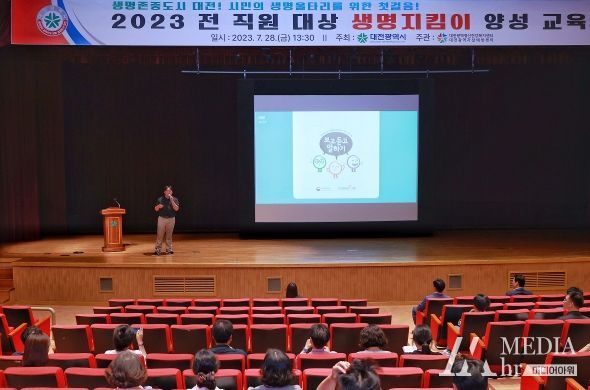 미디어아워 이다정 기자 | 대전시는 28일 시청 대강당에서 대전시 전 직원 대상으로 생명지킴이 양성 교육을 했다.