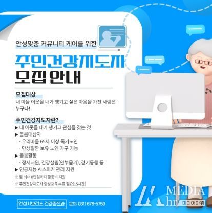 미디어아워 이다정 기자 | 안성시가 안성맞춤 커뮤니티 케어 사업 운영 확대를 위해 주민건강지도자를 모집한다.