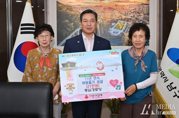 미디어아워 이다정 기자 | 대구광역시 남구청은 지난 17일, 대구 남구동심경로당에서 수해 피해 이웃돕기 성금 21만원을 기탁했다고 23일 밝혔다.