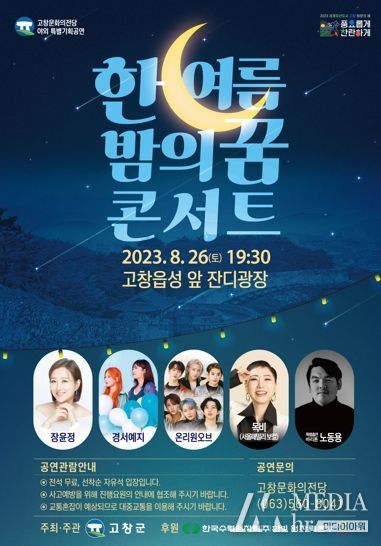 미디어아워 이다정 기자 | 고창군이 2023세계유산도시 고창 방문의해를 맞아 고창문화의전당 야외특별기획공연 ‘한여름밤의 꿈 콘서트’를 오는 26일 저녁 7시30분 고창읍성 앞 잔디광장에서 연다.