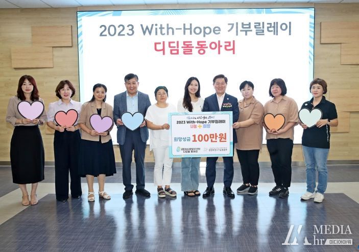 미디어아워 이다정 기자 | 광명시 광명여성새로일하기센터 디딤돌동아리가 ‘2023 With-Hope 기부릴레이’에 참여해 지난 22일 광명시사회복지협의회 희망나기운동사업에 희망성금 100만 원을 전달했다.