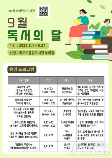 목포어린이도서관 관계자는 ‘이번 독서의 달 행사를 통해 책과 도서관에 더욱 친숙해지는 기회를 제공함은 물론 다양한 경험과 지식을 습득할 기회의 장이 되길 바란다’고 전했다.