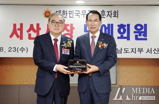 미디어아워 이다정 기자 | 충남 서산시는 이완섭 서산시장이 23일 보훈회관에서 대한민국 무공수훈자회로부터 전국 지자체장 중 최초로 명예 회원패를 받았다고 밝혔다.