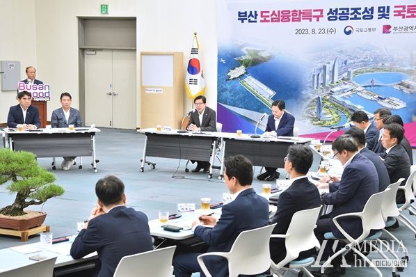 미디어아워 이다정 기자 | 박형준 시장은 8월 23일 오전, 부산시청 1층 대회의실에서 원희룡 국토교통부 장관 및 국토교통부 관계 간부들이 참석한 가운데 부산 도심융합특구 성공 조성 및 국토교통 지역 현안 등에 대해 논의했다.