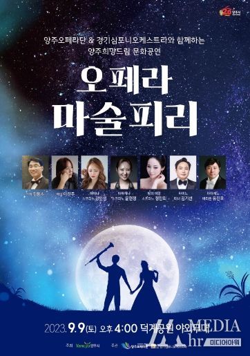 양주오페라단과 경기심포니오케스트라가 공동 주관하는 이번 공연은 ‘2023년 양주 희망드림 문화공연’사업의 일환으로 지역민의 다양한 문화 향유 기회와 볼거리를 제공하고자 마련됐다.