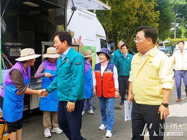 미디어아워 이다정 기자 | 경상남도는 8월 23일 을지연습 실제훈련이 펼쳐진 진주시 남강댐 발전소 인근 어린이 교통공원에서 사랑의 밥차 급식 자원봉사를 실시했다고 밝혔다.