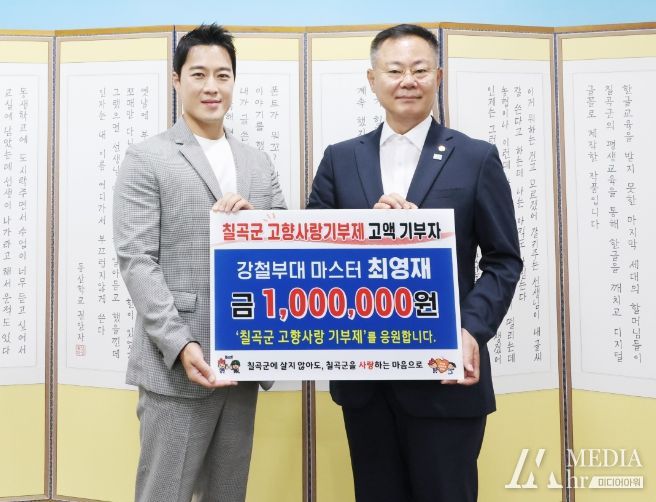 최 씨는 지난 23일 칠곡군청을 찾아 김재욱 군수와 기탁식을 개최하고 고향사랑기부금 100만 원을 전달했다.