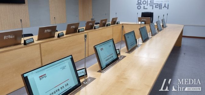 미디어아워 이다정 기자 | 용인특례시가 종이 없는 회의 문화를 만들기 위해 시청 영상회의실에 스마트 전자회의시스템을 구축했다고 24일 밝혔다.