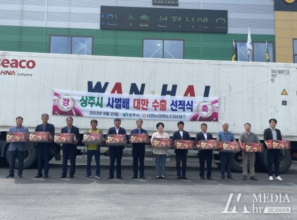 미디어아워 이다정 기자 | 상주시 사벌농협은 8월 23일(수) 사벌농협 농산물산지 유통센터에서 지역구 시‧도의원, 회원농가, 수출관계자 등 20여 명이 참석한 가운데 상주 원황배의 대만 수출 기념식을 가졌다.