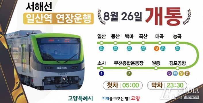 미디어아워 이다정 기자 | 서해선 일산역 연장 개통식이 8월 25일 오전 11시 일산역 복합커뮤니티센터 부지(일산역 2번 출구 방향)에서 개최된다.