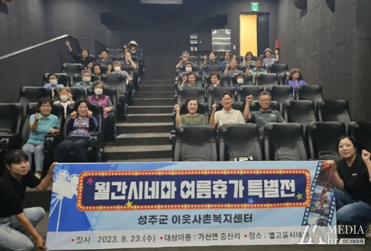 미디어아워 이다정 기자 | 성주군 이웃사촌복지센터는 8월 23일, 8월 30일 2회에 걸쳐 이웃사촌마을인 가천면 중산리와, 선남면 도흥3리 주민 40명을 대상으로 별고을시네마에서 월간시네마 여름휴가 특별전 행사를 실시했다.