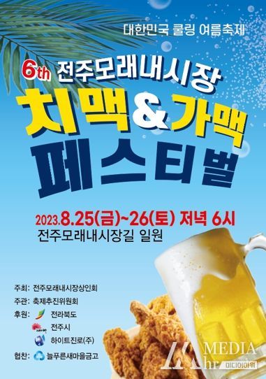 강경표 모래내시장 상인회장은 “올해로 여섯 번째를 맞는 모래내시장 치맥&가맥 페스티벌을 통해 전주시민과 관광객들이 시장을 방문해 무더위를 식히고 전통시장의 옛 추억과 정을 느꼈으면 좋겠다”고 말했다.