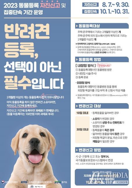 시 축산반려동물과장은 “반려견 등록을 하지 않은 견주들이 이번 자진 신고 기간에 반드시 등록하여 성숙한 반려동물 문화의 확산으로 반려인과 비반려인이 공존하는 성숙한 반려 문화가 형성되길 바란다”고 말했다.
