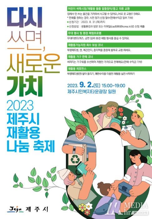 미디어아워 이다정 기자 | 제주시는 9월 2일 오후 3시부터 7시까지 제주시민복지타운 일원에서 “2023 제주시 재활용 나눔 축제”를 개최한다.