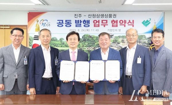 24일 산청군과 진주시는 진주시청 기업인의 방에서 ‘산청-진주 상생상품권 발행을 위한 업무협약식’을 가졌다고 밝혔다.
