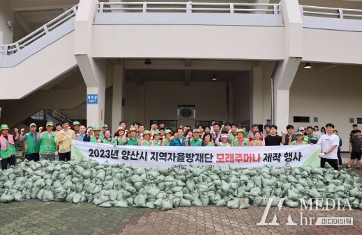 미디어아워 이다정 기자 | 양산시 지역자율방재단은 24일 양산종합운동장에서 단원 70여명과 재난대응 공무원이 함께 태풍·호우와 겨울철 폭설 등 재난 대비를 위해 모래주머니 2,000개를 만들어 읍면동 배부 행사를 실시했다.