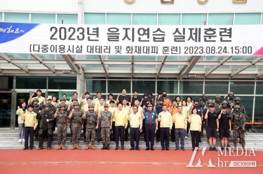 미디어아워 이다정 기자 | 홍천군은 24일 오후 3시 홍천종합체육관에서 8월 21일부터 24일까지 실시하는 2023년 을지연습 연계 민·관·군·경 합동으로 다중이용시설 대테러 및 화재대피 훈련을 실시했다고 밝혔다.