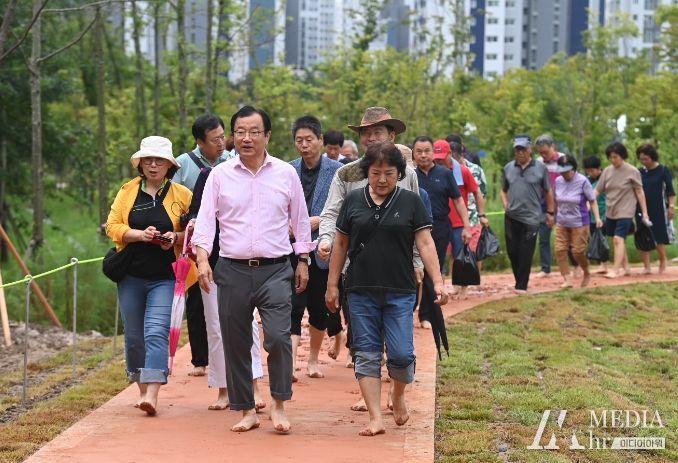 미디어아워 이다정 기자 | 하남시가 ‘걷고 싶은 하남 만들기’ 프로젝트 일환으로 미사한강5호공원(망월동 832번지) 내 구산둘레길 및 황토산책길을 조성하며 전국 최고의 ‘명품 맨발걷기 도시’로 우뚝 섰다.