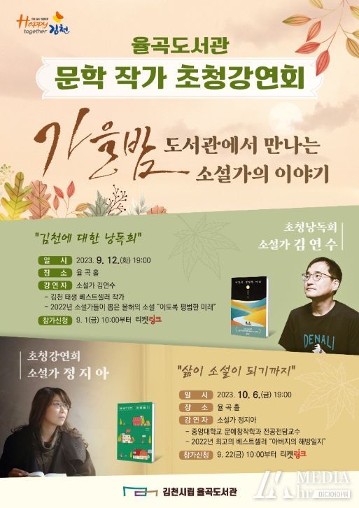 미디어아워 이다정 기자 | 김천시립율곡도서관에서는 독서의 달을 맞아 시민의 도서관 이용을 장려하고 책 읽는 분위기를 확산하기 위해 9월 12일 김천 태생의 베스트셀러 소설가 김연수 작가를 초청해 낭독회를 개최한다고 밝혔다.