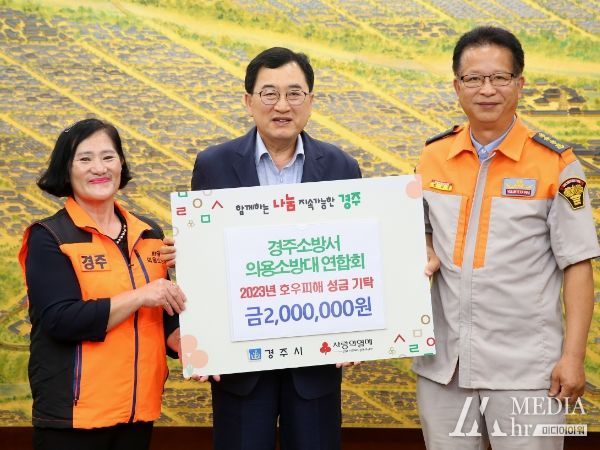 미디어아워 이다정 기자 | 경주소방서 의용소방대 연합회는 지난 28일 경주시청을 방문해 호우 피해 성금 200만원을 기탁했다.