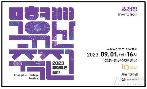 미디어아워 이다정 기자 | 문화재청 국립무형유산원(원장 안형순)은 개원 10주년과 무형문화유산 보호 협약 20주년을 기념하여 열리는 ‘2023 무형유산축전’의 개막식을 9월 1일 오후 4시에 국립무형유산원 중정(전라북도 전주시)에서 개최한다.