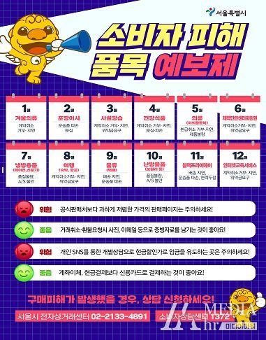 서울시는 소비자에게 특정 시기에 증가하는 피해품목과 유형을 미리 알려 피해를 예방하고자 올해부터 ‘소비자 피해 품목예보제’를 실시하고 있다. 시기별 예보 품목은 지난 4년간 한국소비자원에 접수된 피해상담 빅데이터 57만여 건을 분석해 정했다.