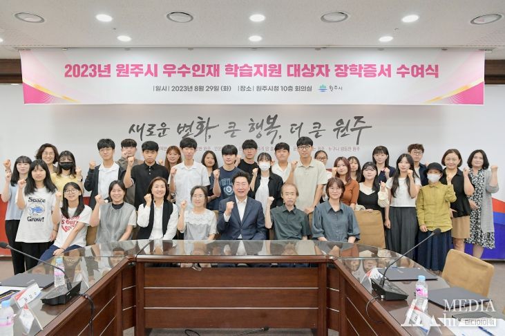 미디어아워 이다정 기자 | 원주시는 지난 29일 ‘2023년 원주시 우수인재 학습지원 대상자 장학증서 수여식’을 개최했다.