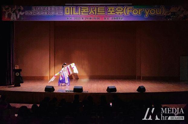 미디어아워 이다정 기자 | (재)강원인재육성평생교육진흥원은 8월 29일 도내 학생들을 위한 문화예술 향유기회 제공 및 지역사회 공헌을 실천하고자 강원미래인재인 일렉기타 양태환, 한국무용 유망주 박솔지 양과 함께 강원중학교를 찾아 미니콘서트를 열었다.