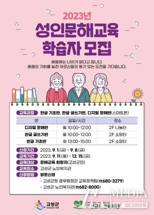 미디어아워 이다정 기자 | 고성군은 배움의 기회를 놓친 비문해 성인들을 대상으로 하반기 성인 문해교육 학습자를 모집한다.