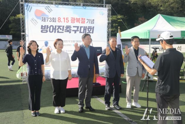 미디어아워 이다정 기자 | 제78주년 광복절을 기념하고 울산 동구 지역 축구 동호인의 축구 대항을 통해 주민 화합을 다지는 제73회 8.15 방어진 축구대회가 9월 3일 오전 8시에 울산과학대학교 동부캠퍼스에서 열렸다.