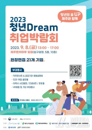 미디어아워 이다정 기자 | 제주특별자치도는 오는 8일 오후 1~5시 제주벤처마루 일원에서 ‘청년의 꿈 업(UP), 제주와 함께!’라는 슬로건으로 '2023 청년 드림(Dream) 취업박람회'를 개최한다고 밝혔다.