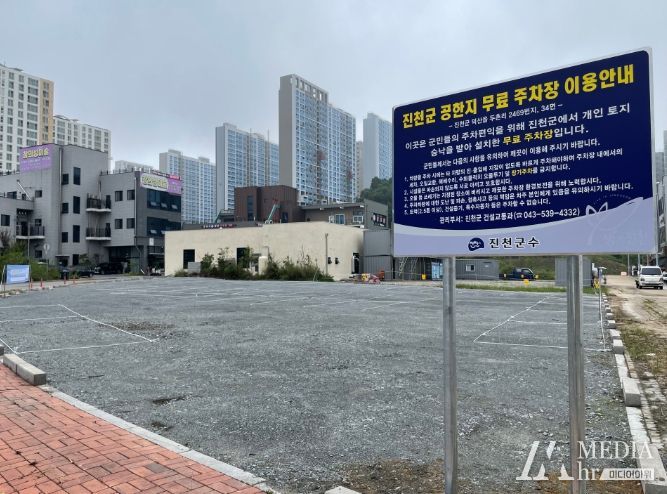 미디어아워 이다정 기자 | 진천군은 충북혁신도시 두레봉 공원 인근 공한지(사유지)의 사용 승낙을 받아 임시 무료 주차장으로 개방한다고 4일 밝혔다.