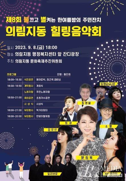 미디어아워 이다정 기자 | 의림지동 한여름 밤의 주민잔치 "제8회 의림지동 힐링음악회"가 오는 8일(금) 저녁 6시 의림지동행정복지센터 잔디광장에서 개최된다.