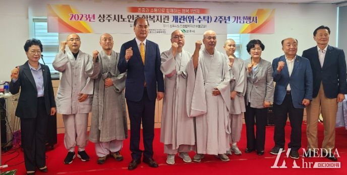 미디어아워 이다정 기자 | 상주시노인종합복지관은 2023년 9월 1일 강영석 상주시장, 상주시의회 안경숙의장, 남영숙 도의원, 김홍구 도의원, 상주시사암연합회장 상락사 주지 동조스님, 직지사복지재단 사무처장 수진스님을 비롯한 200여 명의 각계 초청인사 및 복지관 이용 어르신들이 참석한 가운데 위탁 2주년 기념행사 및 비전선포식을 개최했다.