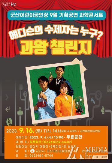 미디어아워 이다정 기자 | 군산시는 오는 16일 11시와 14시에 군산어린이공연장에서 과학콘서트 '과왕 챌린지'를 공연한다고 밝혔다