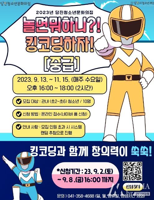 미디어아워 이다정 기자 | 당진청소년문화의집에서는 ‘2023년 놀면뭐하니?! 킹코딩하자! [중급]’ 프로그램을 9월 13일부터 11월 15일까지 총 10회기 동안 평일 프로그램으로 무료로 개설한다.