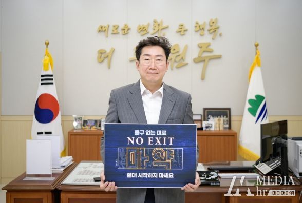 미디어아워 이다정 기자 | 원강수 원주시장이 마약 근절을 위한 ‘NO EXIT’캠페인에 동참했다.