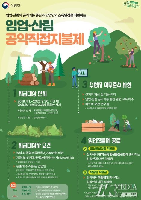 김종운 산림휴양과장은 ”공익가치가 큰 임업 분야의 임가 소득 보전과 산림의 공익가치 향상을 위해 관내 자격요건을 갖춘 임업인들이 수혜 대상에서 누락되는 일이 없도록 지속적으로 홍보해나가겠다“라고 말했다.
