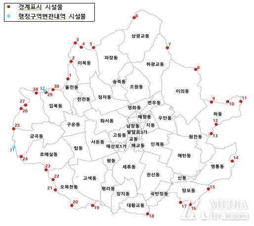 미디어아워 이다정 기자 | 수원시가 지난 3~8월 수원시 경계를 알려주는 역할을 하는 경계시설물을 전수조사한 결과, 훼손된 경계시설물은 없는 것으로 나타났다.