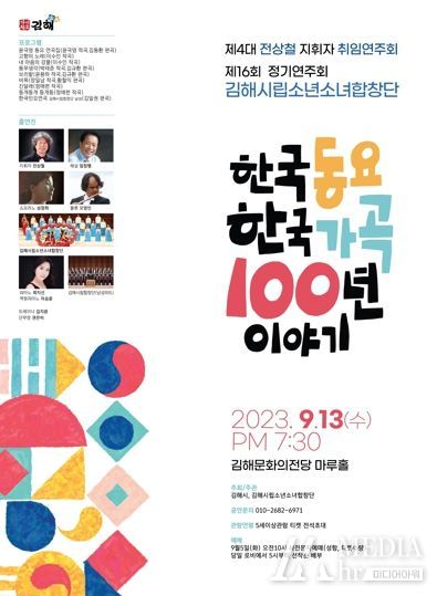 미디어아워 이다정 기자 | 김해시는 오는 9월 13일 수요일 저녁 7시 반 김해문화의전당 마루홀에서 시립소년소녀합창단 제16회 정기연주회를 개최한다고 밝혔다.