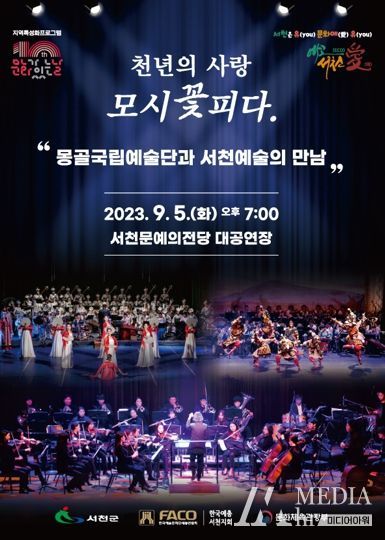 미디어아워 이다정 기자 | 서천군이 오는 5일 서천 문예의 전당에서 전통예술단 혼, 서천필하모닉오케스트라, 몽골국립예술단 등과 문화가 있는 날 ‘모시 꽃 피다’를 개최한다.