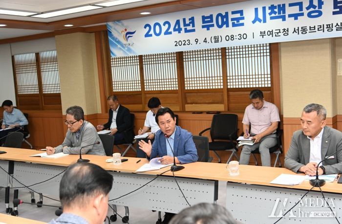 미디어아워 이다정 기자 | 부여군은 지난 4일 군청 브리핑실에서 박정현 군수를 비롯한 각 부서장 등이 참석한 가운데 2024년 시책구상 토론회를 개최했다.