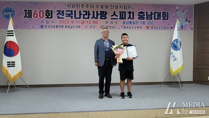 한편, 이번 대회에서 최우수상을 받은 송간초등학교 김율 학생은 지난 7월 한국자유총연맹 부여군지회가 개최한 제60회 전국나라사랑 스피치대회 부여군 예선에서 대상을 차지하며 충남대회 출전 자격을 얻었다.