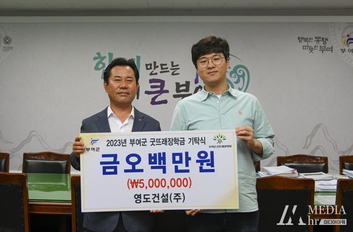 미디어아워 이다정 기자 | 영도건설(주)은 지난 4일 부여군청을 방문해 지역 인재 육성을 위한 장학금 500만원을 (재)부여군굿뜨래장학회에 기탁했다.