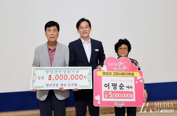 우승희 영암군수는 “김 향우와 부인의 마음이 영암군민에게 잘 전해질 수 있도록 귀하게 기부금을 쓰겠다”고 전했다.