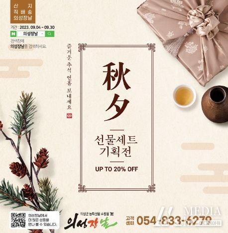 미디어아워 이다정 기자 | 의성군은 추석 명절을 맞아 의성군 대표 농특산물 쇼핑몰 의성장날에서 9월 4일부터 30일까지 추석맞이 특별기획전을 실시 한다고 밝혔다.