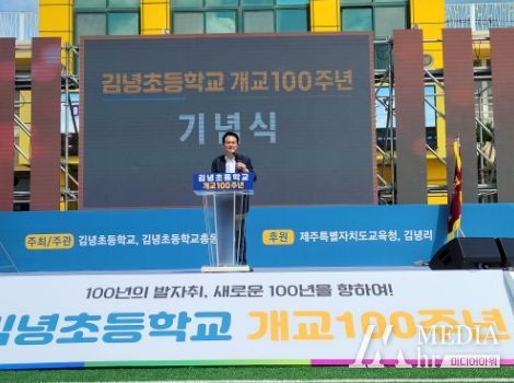 미디어아워 이다정 기자 | 김희현 제주특별자치도 정무부지사는 2일 오전 10시 서귀포시 성산읍 동남초등학교가 주최하고 동남초등학교총동창회가 주관한 개교 100주년 기념행사에 참석해 교육가족의 노고에 감사를 표하고, 격려를 전했다.