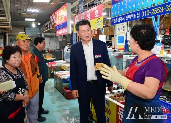 김성수 해운대구청장은 1일 미포씨랜드 1층 활어판매업소를 찾아 원산지를 점검하고, 상인들에게 올바른 원산지 표시법을 안내하는 한편 현장의 목소리를 들었다.