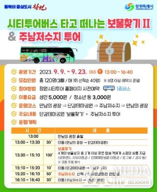 미디어아워 이다정 기자 | 창원특례시는 시티투어 1층버스 탑승객을 대상으로 오는 9일부터 23일까지 매주 토요일에 보물찾기 여행 프로그램을 진행한다고 4일 밝혔다.